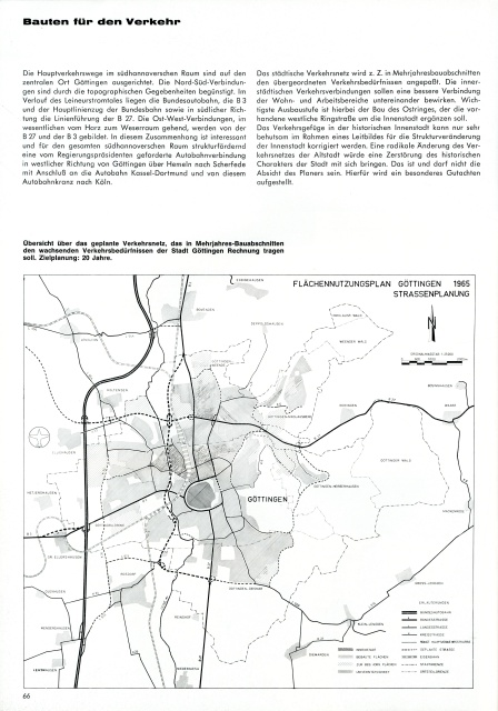 autogerechte Stadt werden. Dieser Plan aus den späten 60ern gibt einen Überblick über geplante Straßenbauprojekte.