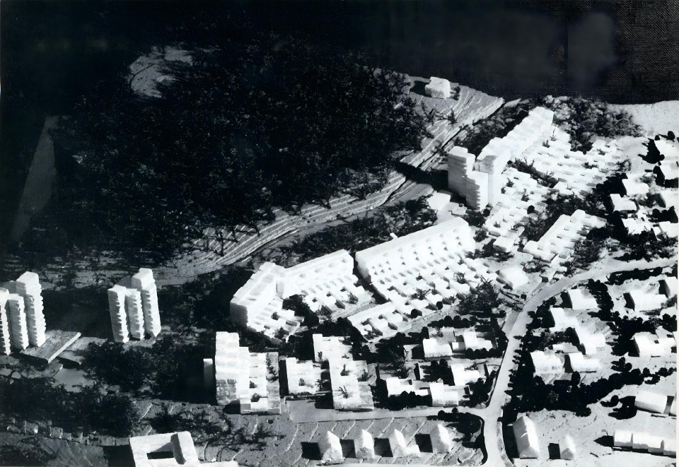 Den stadtplanerischen Anspruch erkennt man auch auf den Schnitt durch den Hang, der neben verschiedenen Bebauungstypen auch Straßen beinhaltet.